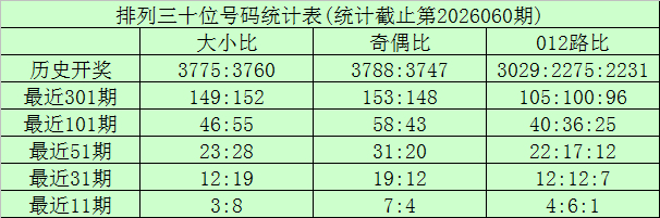 在前边11期奖号中,百位大小比开出5:6,大号走冷,本期温雅大号回补;